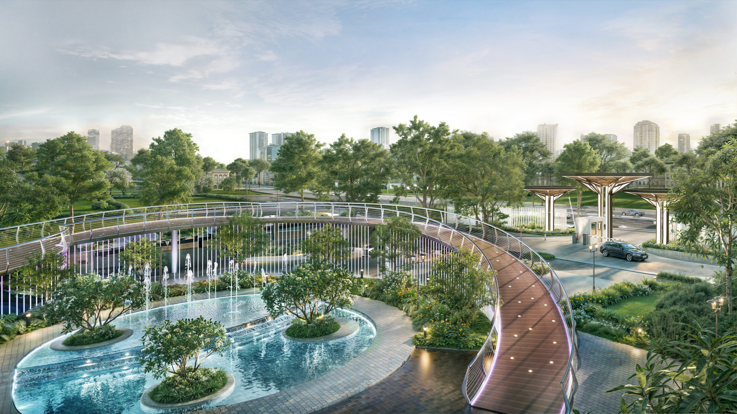 • Hệ thống 30+ tiện ích: Bể bơi bốn mùa, bể bơi vô cực, công viên trung tâm, vườn dạo bộ trên cao và khu BBQ.